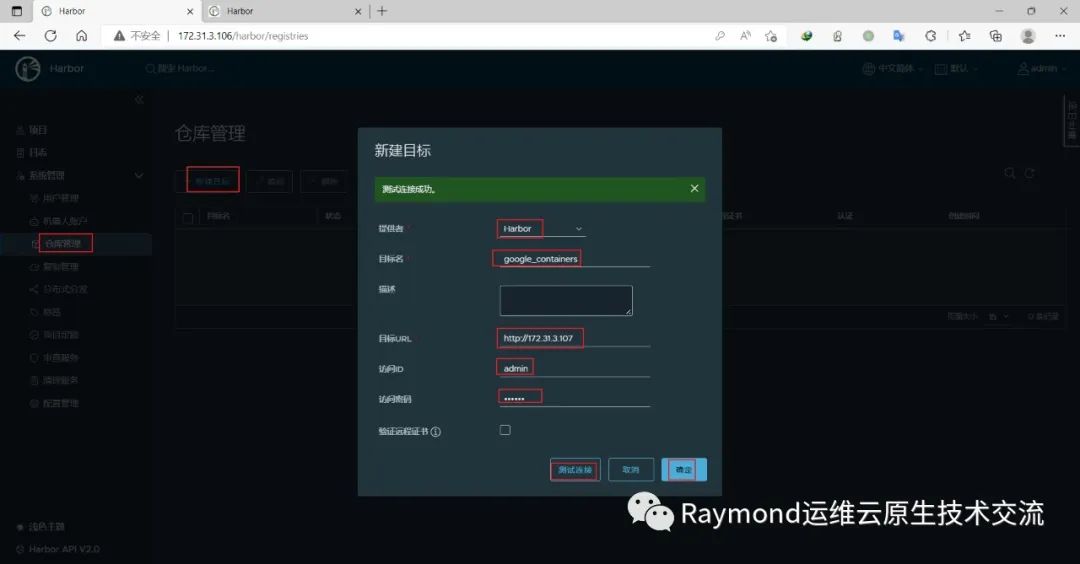 在harbor02上新建目标