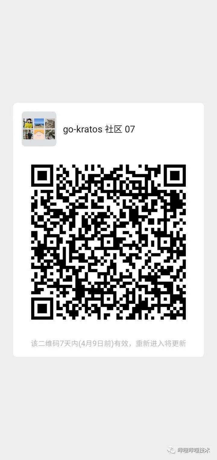 (如遇二维码过期,可以通过[Kratos开源社区]公众号的菜单【联系我们】> 【加入社区】> 【二维码】获取最新二维码)