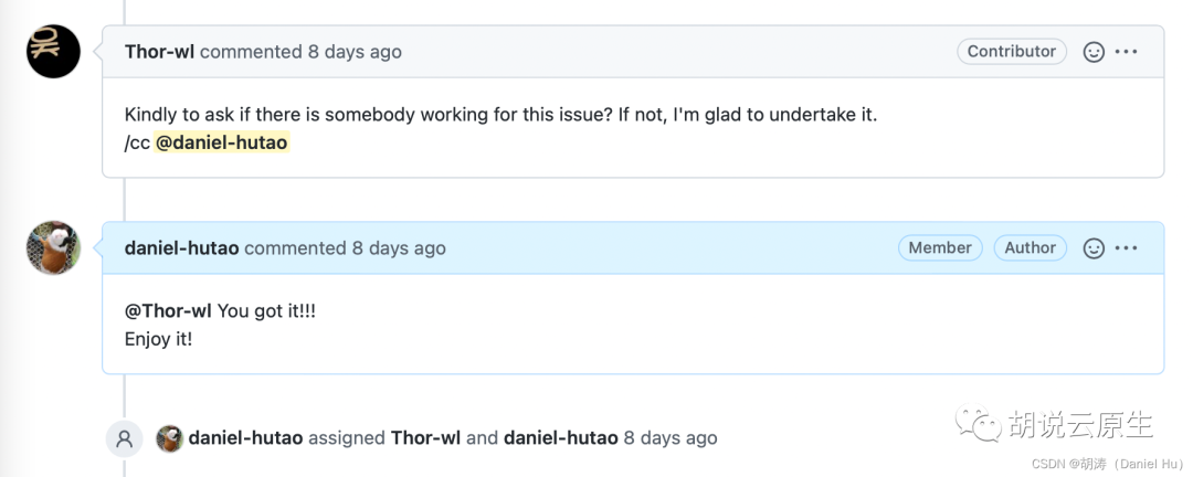 如图所示,如果一个 issue 还没有被认领,这时候你上去留个言,等待管理员会将这个任务分配给你,接着你就可以开始开发了。