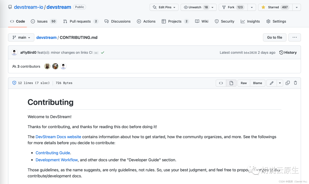 在 DevStream 的 Contributing[9] 文档里我们放了一个 Development Workflow[10],其实就是 PR 工作流的介绍,不过今天,我要更详细地聊聊 PR 工作流。