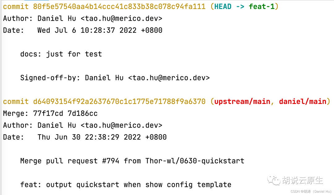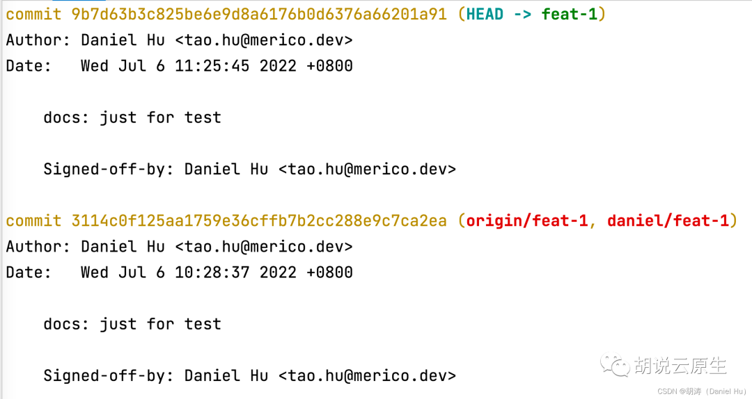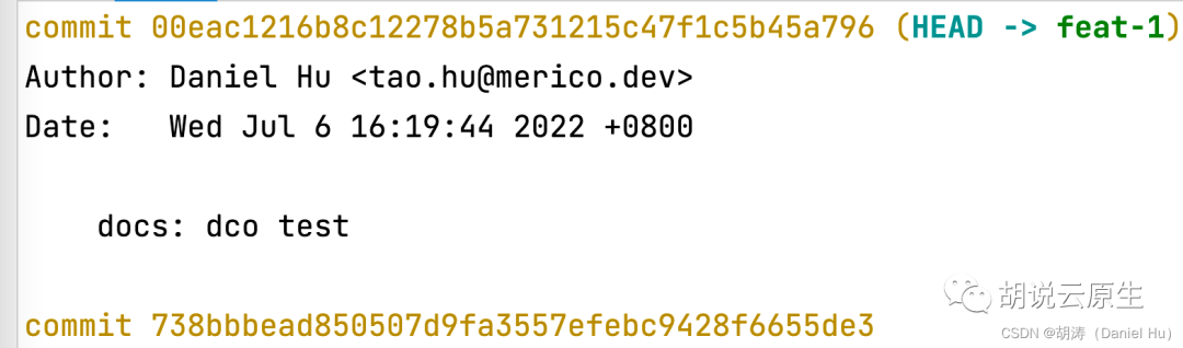 这行信息相当于是对应 commit 的作者签名。要添加这样一行签名当然很简单,我们直接在git commit