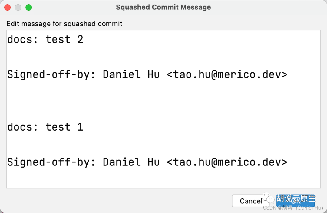 这时候我们可以同时修改 commit message,如果不需要,那就直接保存退出好了,签名信息是会自动加上的。