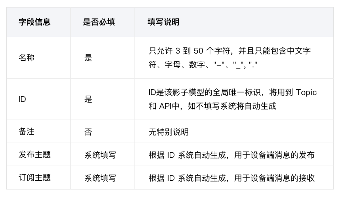 影子模型字段说明: