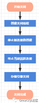 5、关闭server层、关闭存储引擎层。在这一步,会刷新表结构到磁盘,关闭所有打开的表,刷新LSN到表空间文件(ibd文件)。
