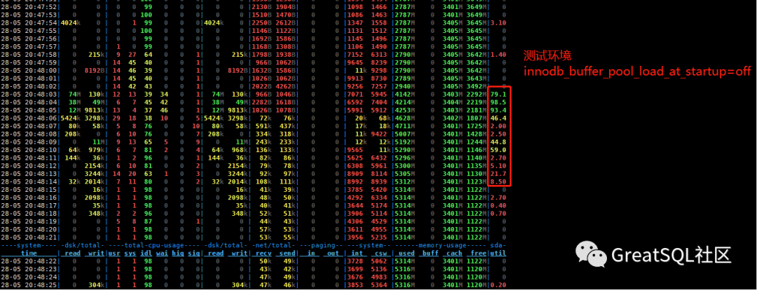 在MySQL启动过程中,因为有innodb_buffer_pool的load,可以让实例在短时间内恢复到重启前的状态,对于数据库系统的稳定有比较大的作用,但是由于加载需要消耗大量IO,可能会引起IO相关的问题,这是需要注意的。