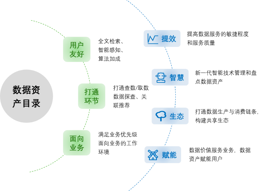 一个实用友好的数据资产目录,能够打通查数/取数环节、打通基础类数据和指标类数据的联系,并通过人工智能和机器学习等先进技术,更好地支持数据的探查和关联推荐。