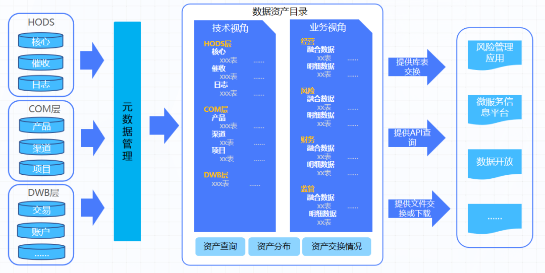 3、融合元数据、血缘关系、数据标准、数据质量、数据安全、认责管理等数据治理信息,构建适用不同业务场景的资产目录服务;