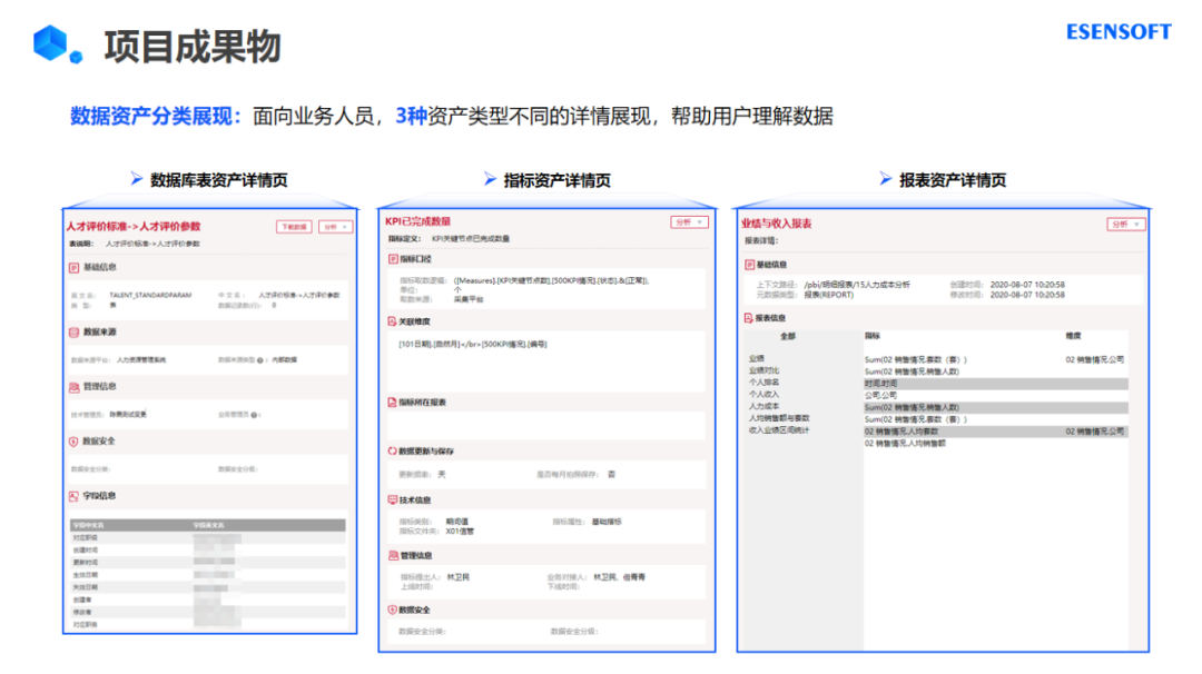 数据资产管理平台EsDataAssets,是一款通过定义、盘点、规划无序的数据类和应用类资源,提供全局统一的数据资产门户,开发授权丰富、高效、安全的数据服务方式,协助构建主题明确、服务完善、权责清晰的数据资产管理体系的软件产品。