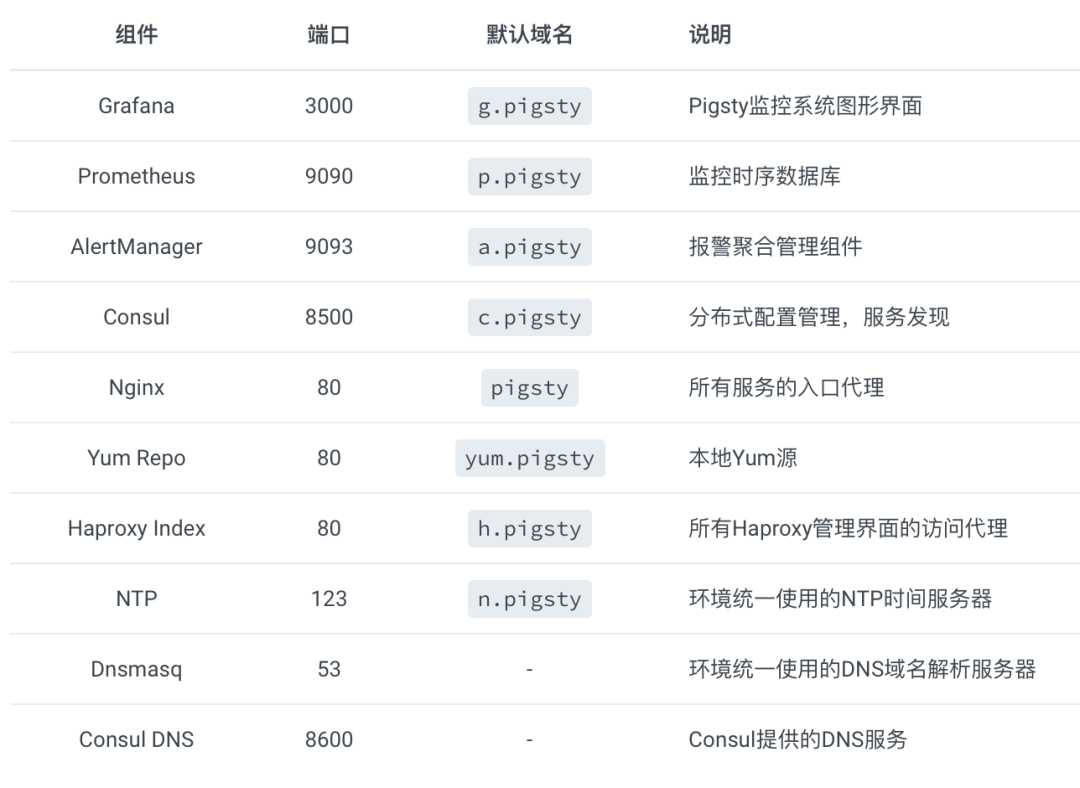 在Pigsty中,一个数据库节点,除了数据库本身还包含了一系列附属组件。
