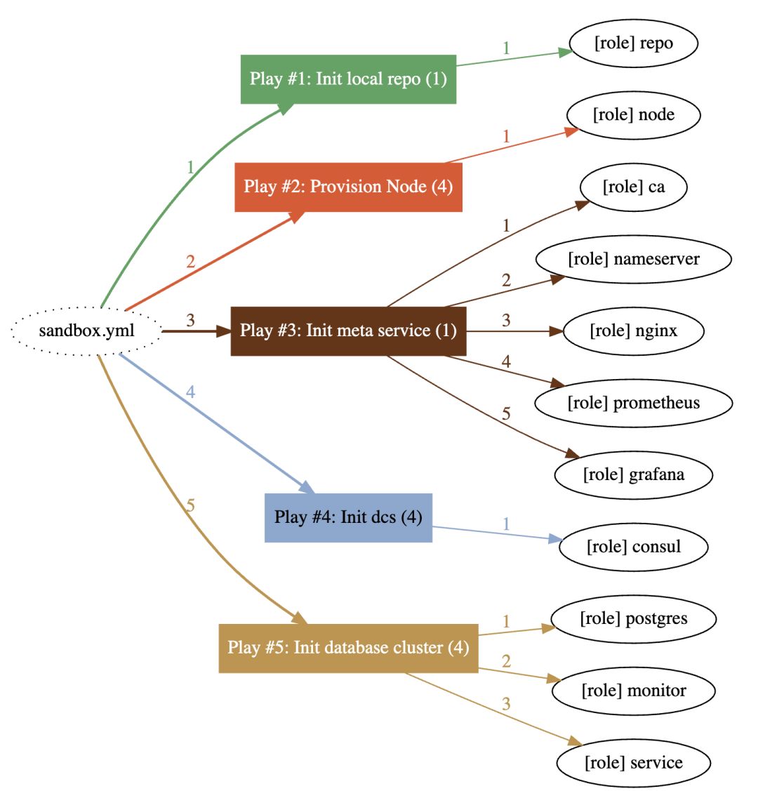 Pigsty是开源免费(您想赞助掏钱我举双手资瓷!)的数据库供给方案。在Pigsty中拥有这样的数据库集群,只需要两步: