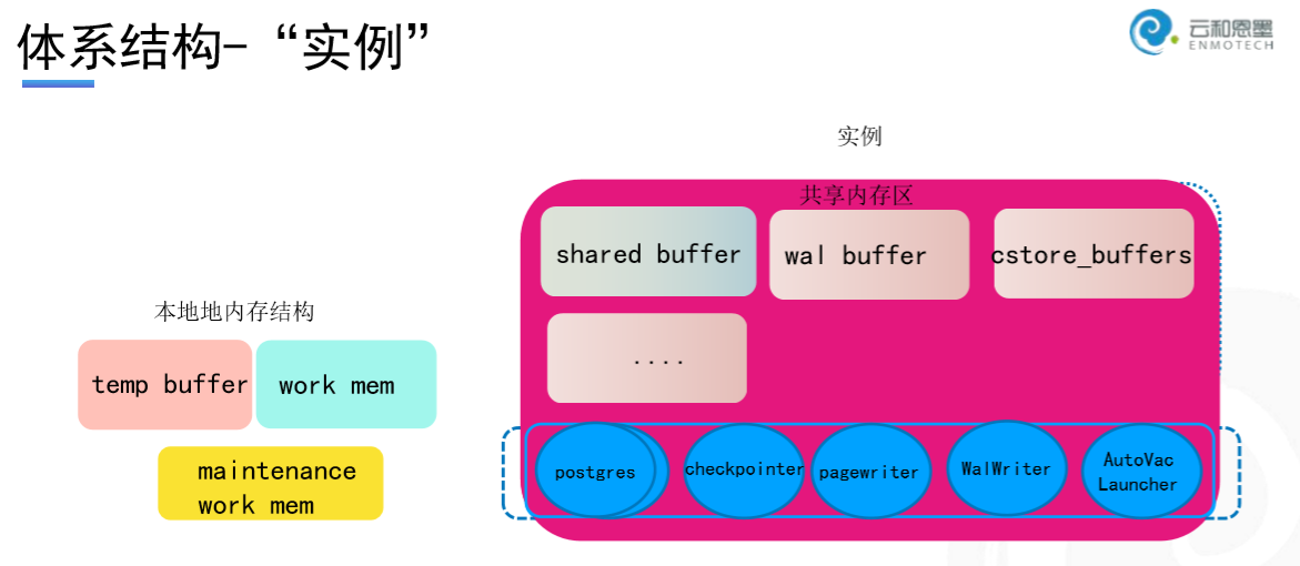 WAL buffer: 在服务端出现问题的时候,确保数据不会丢失,在写到磁盘之前,wal buffer 是 wal log 的缓存区域。相当于 Oracle的redo log