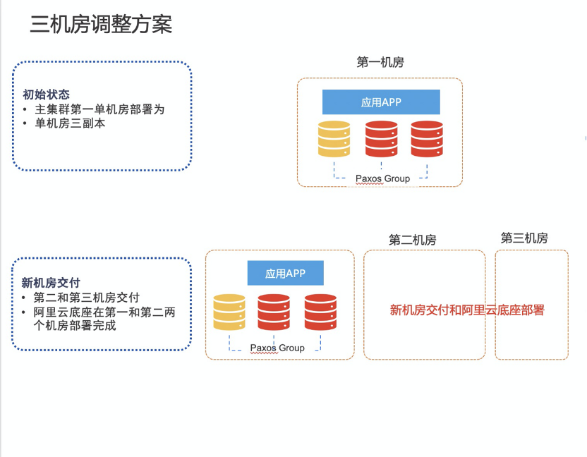 - 由于分布式多副本数据一致性协议要将每一个事务的数据强同步到多数派副本中,这种部署模式下必然导致频繁的跨机房同步操作。为了保证数据库的写性能,对机房之间的网络质量有比较高的要求,通常要求任何两个机房之间的网络时延不超过2毫秒(ms)。