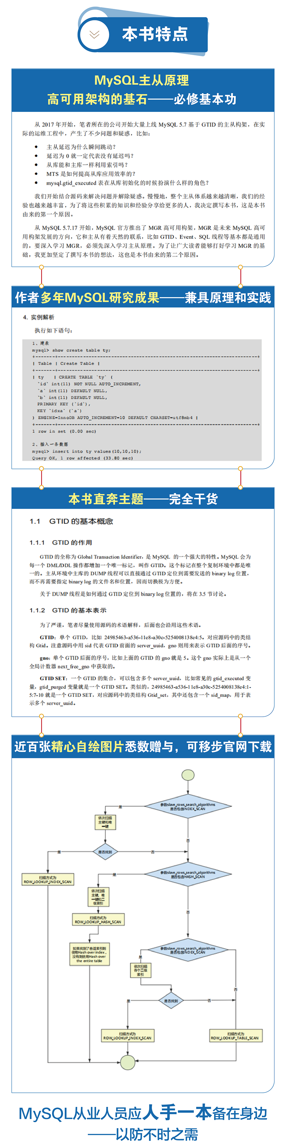 第1章:介绍 GTID 相关的知识点,包含 GTID 的构成、GTID 模块的初始化、GTID 中的运维等知识点。
