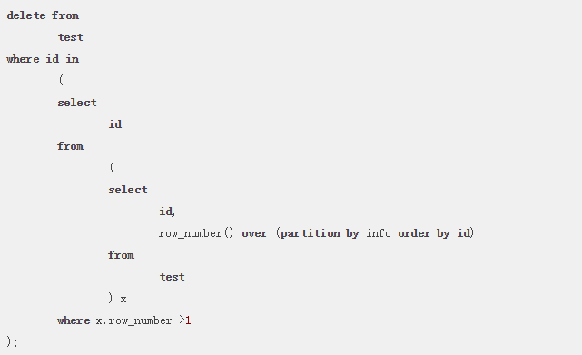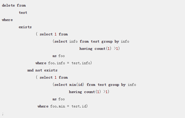 此时就需要先按照一定逻辑将重复数据仅保留1条, 将冗余的delete掉
