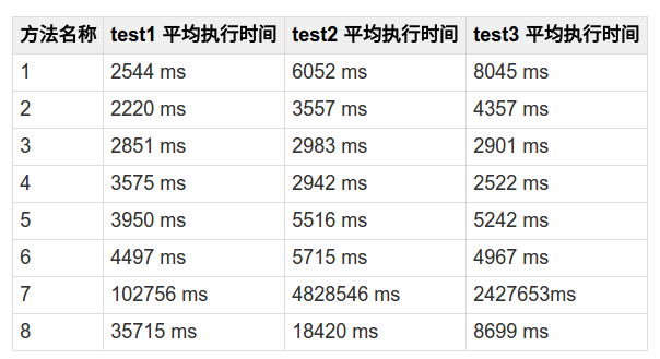 方法7 方法7 执行总时间最长(随着单条SQL的总条数的增加而增加),