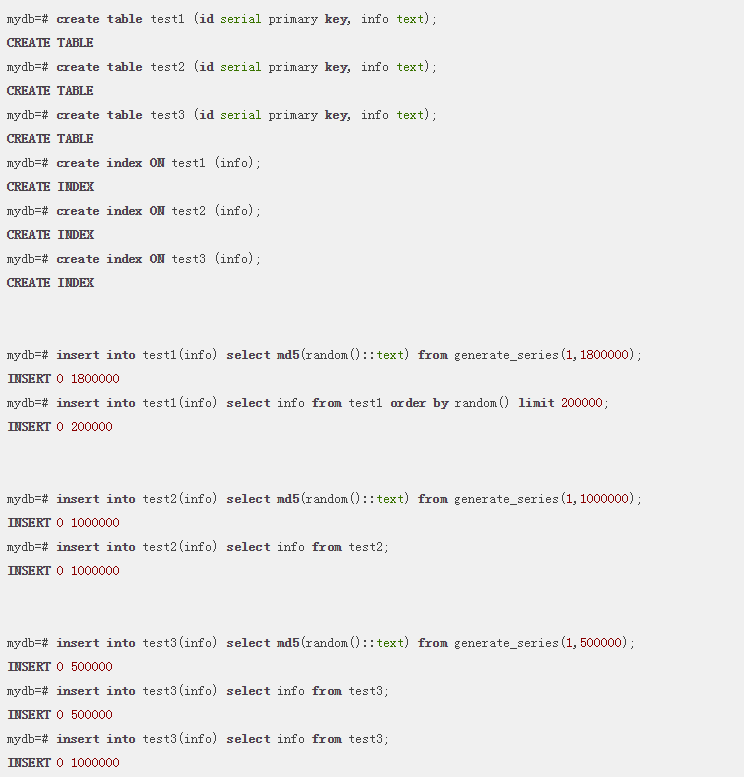 由于query在 table 数据分布不同的情况下执行效率存在差异, 所以我们构造3组测试数据进行对比