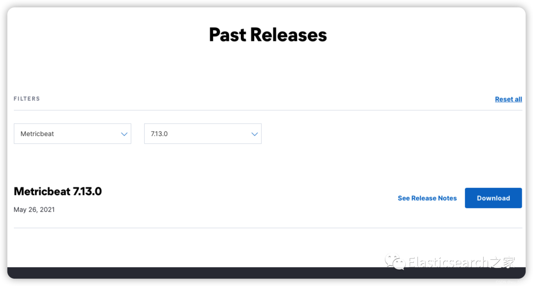 Metricbeat官方下载地址: https://www.elastic.co/cn/downloads/past-releases#metricbeat[3]