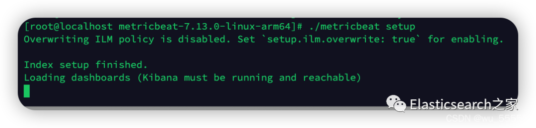 7、启动metricbeat(如果上述的指令没有自动退出的话,就新开个窗口执行,不要退出上述指令窗口)