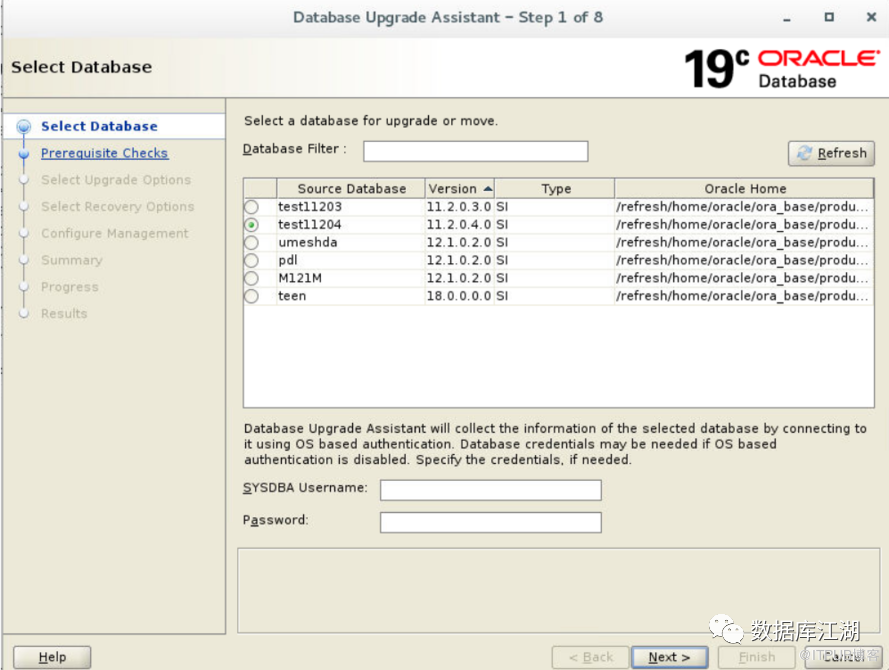 我们需要选择要升级的数据库的 SID,在这个例子里是 test11204