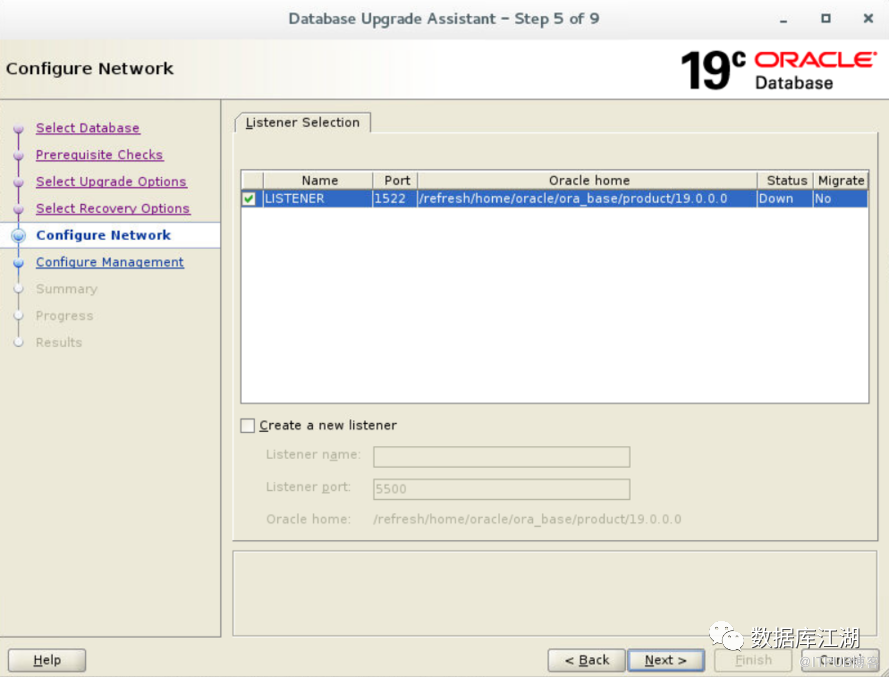 - 可以把已存在的 listener 升级到最新的 19c Home 下或者在 19c 目标库 HOME 下创建一个新的 listener。
