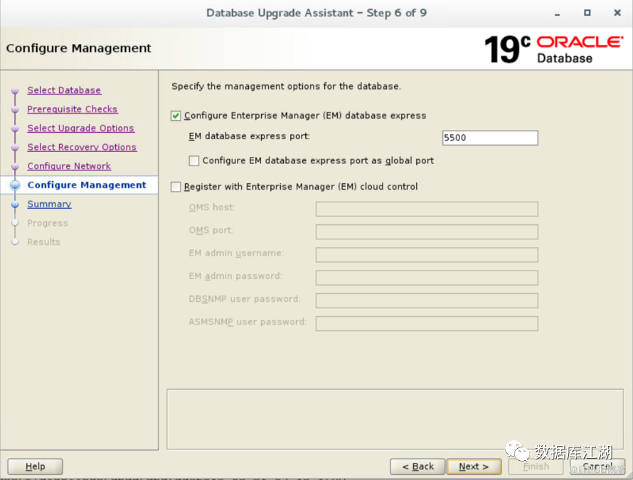 如果在升级数据库到 19c 版本后,有需要再降级,那么我们必须在升级前使用 emdwgrd 工具备份 Database Control 的文件,这样在降级后可以恢复这些文件。
