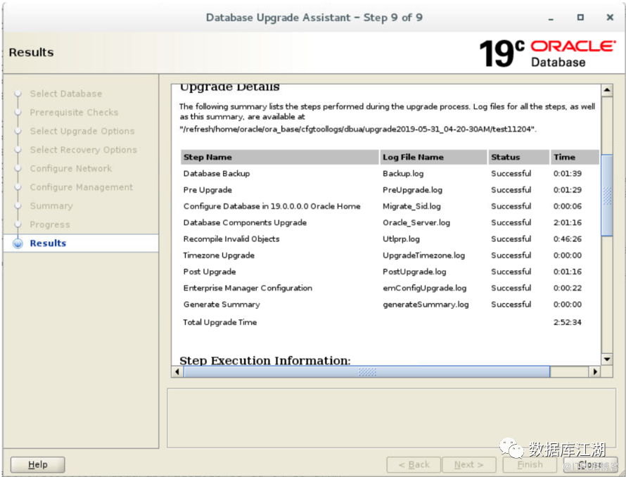 它会显示日志的路径以及升级的各个步骤花费的时间。
