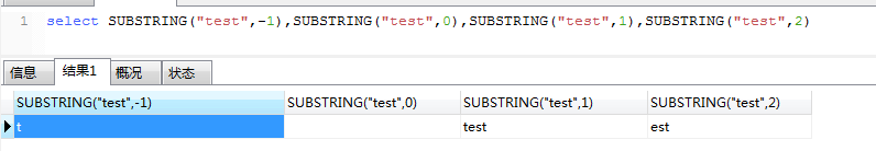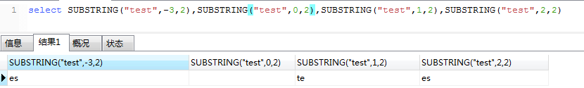 3、substring(str,index) =SUBSTRING(str FROM pos) 包括index这个位置的字符