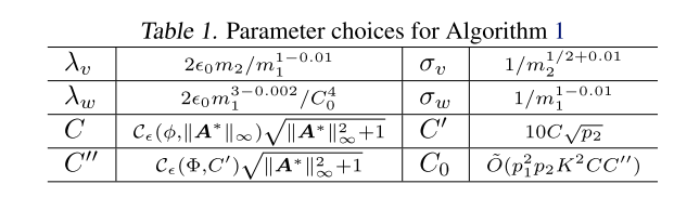 上述算法总结了具有下表中参数选择的算法:
