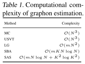「计算复杂性分析」:计算量主要来自于图的估计和合成图的生成。对于图估计,假设有m个图,每个图有n个节点,用k个分块估计阶跃函数来逼近一个图,所用的图估计方法(Xu et al.,2021)的复杂度如下表所示。对于图的生成,假设需要生成L个具有K个节点的图,节点生成的计算复杂度为,边生成的计算复杂度为,所以图生成的总体复杂度为。