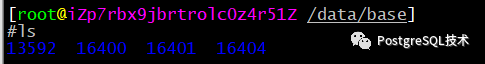 而集群中的database对应$PGDATA/base目录下的一个文件夹,文件夹的名称即我们上面提到的oid。