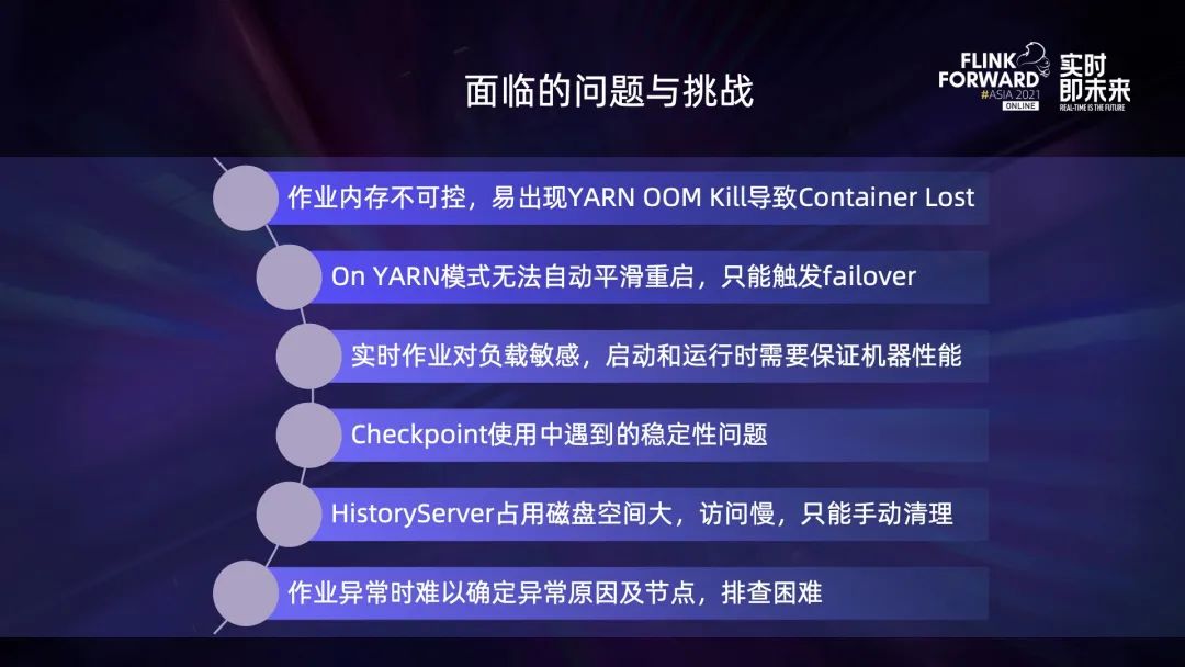 作业内存占用不可控,on Yarn 模式非常容易出现 Yarn container OOM kill,导致 container lost,引发作业频繁重启,包括框架内重启。