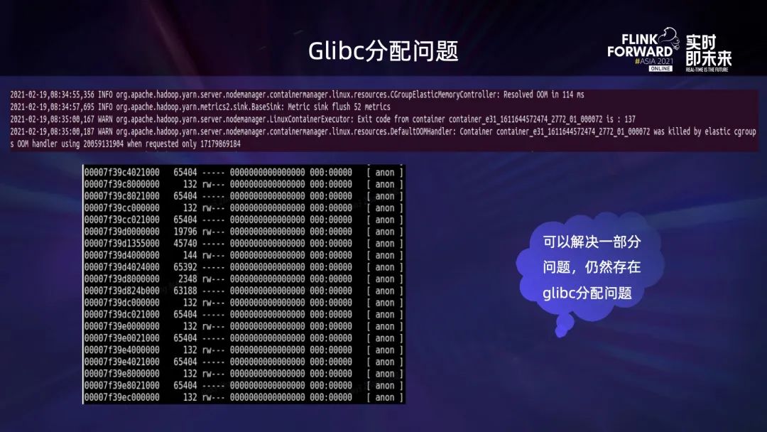 然而,Cgroup 只是在一定程度上解决了 container 频繁被 Yarn oom kill 导致 lost 的问题,并没有完全彻底地解决。在使用的过程中,依然存在某些 container 的内存使用持续上涨,最终被 cgroup oom kill 的情况,然后我们发现该问题可能与 glibc 的内存分配 bug 有关,长期运行的进程会存在连续多块大小为 65536 的 anon 块,所以我们最终的解决方案如下: