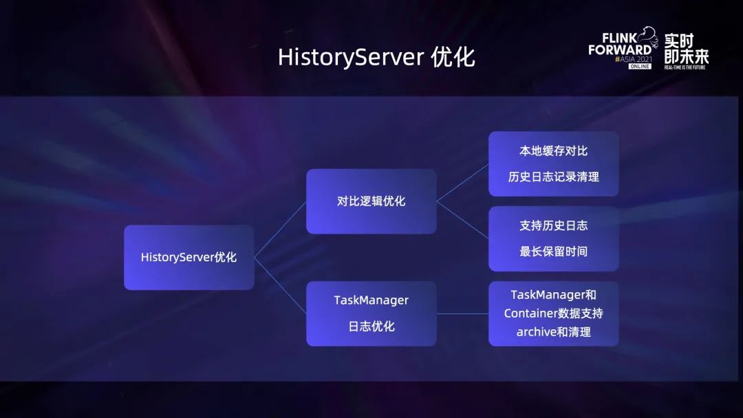 一个是读取当前已经缓存到本地磁盘的作业历史日志信息,并将其与历史日志记录进行对比,从而避免出现悬浮的缓存作业;支持历史日志的最长保留时间,超过其生命周期就会进行清理,相比于当前支持的历史日志最大保留数量,更加科学合理;另外我们也支持了 Taskmanager 和 Container 历史数据的打包和清理,更全面地记录作业在异常退出时的各项信息,方便排查问题。