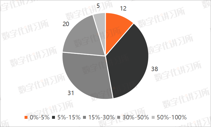 注:表格按归母净利润从高至低排序,选取归母净利润1亿元以上公司数据。根据公司中报和wind数据整理, 106家信创上市公司中,2022年上半年毛利率在20%、20%至50%以及50%至100%的公司数量分别为17家、54家以及35家。对于信创产业来说,毛利率在20%以下的17家毛利率偏低,产品以硬件设备为主,如固件、整机设备、存储设备等。毛利率在20%至50%范围内占比最高,大多是软硬件产品以及解决方案相结合。虽然信创产业上市公司整体毛利率偏高,但与去年同期相比,仅有35家公司毛利率水平有所增长,超半数公司毛利率小幅下降。