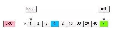 如上图,假如管理缓冲池的LRU长度为10,缓冲了页号为1,3,5…,40,7的页。