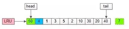 (2)把页号为50的页,放到LRU头部,同时淘汰尾部页号为7的页;