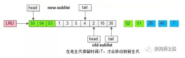 After adding the "old generation residence time window" strategy, the pages that are loaded a lot in a short time will not be inserted into the new generation header immediately, but the pages that are visited only once in a short time will be eliminated first.