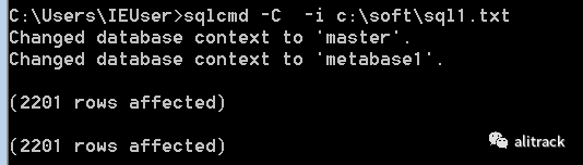 sqlcmd -C -d metabase1 -i c:\soft\sql1.txt