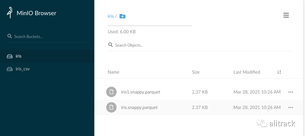 $ mc cp /Users/steven/data/iris/iris.snappy.parquet myminio/iris/