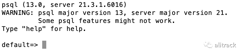 $ psql -h127.0.0.1 -p9005 -Udefault default
