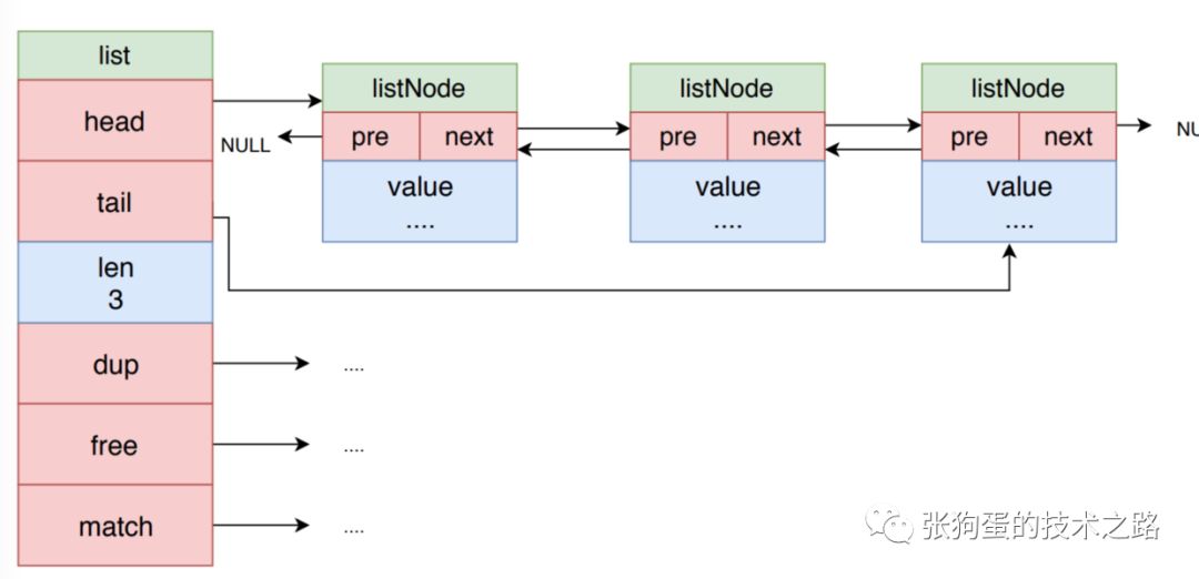 Redis 的链表是双向链表,示意图如上图所示。链表是最为常见的数据结构,这里就不在细说。