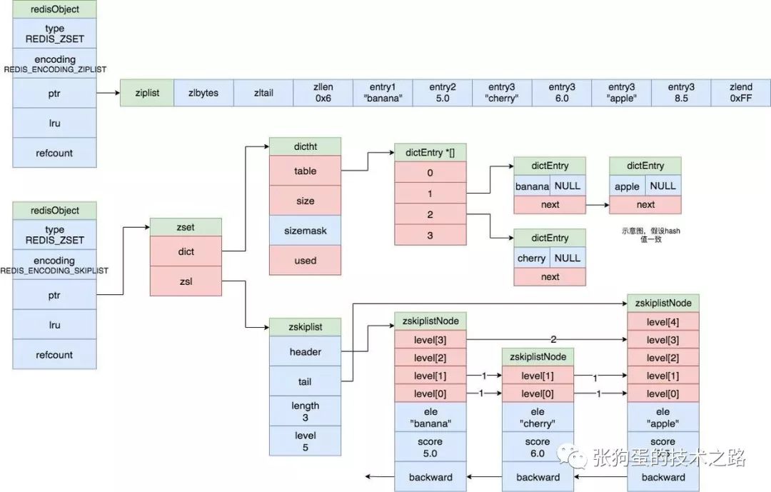 有序集合使用 skiplist 编码时使用 zset 结构作为底层实现,一个 zet 结构同时包含一个字典和一个跳跃表。
