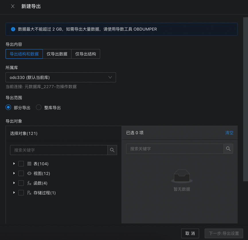 根据用户的行为习惯,新版本将导入导出的操作进行了分步骤处理,条理上更加清晰。在导出范围上我们支持按对象类型批量选择导出也支持全库导出,提高了选择对象的效率。图 8 展示了对象选择时交互上的改进。同时新版本我们对导入导出的兼容性也做了全面升级,增强了导入文件有效性校验,再也不用担心版本升级后,导出的文件无法导入的难题了。