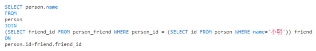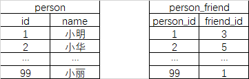 图中展示了一个非常简单的关系模型,当我们想就这个关系模型查询关系深度为1的关系(比如小明的朋友)时可使用