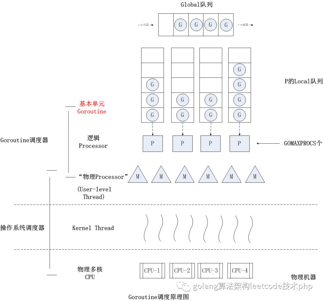 的 G 供 M 运行,那么 M 将解绑 P,并进入 sleep 状态。当 I/O available,在 wait queue 中的 G 会被唤醒,标记为_Grunnable