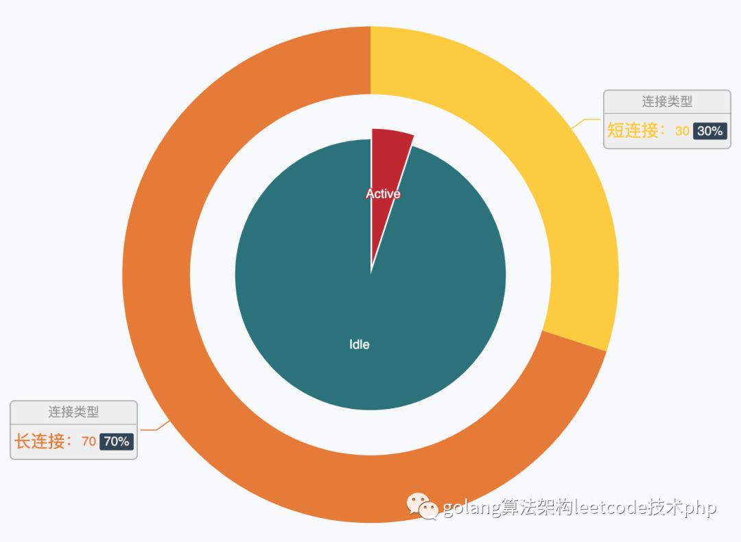 上面提到了 Go netpoll 在某些场景下可能因为创建太多的 goroutine 而过多地消耗系统资源,而在现实世界的网络业务中,服务器持有的海量连接中在极短的时间窗口内只有极少数是 active 而大多数则是 idle,就像这样(非真实数据,仅仅是为了比喻):