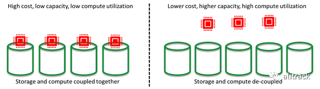 在云上提供廉价,持久且几乎无限的存储 实现了计算和存储的分离,从而可以独立扩展任何一个