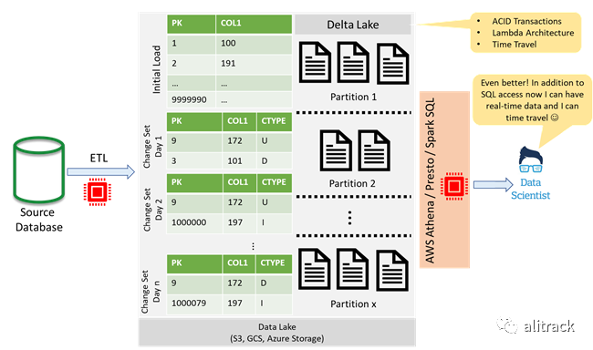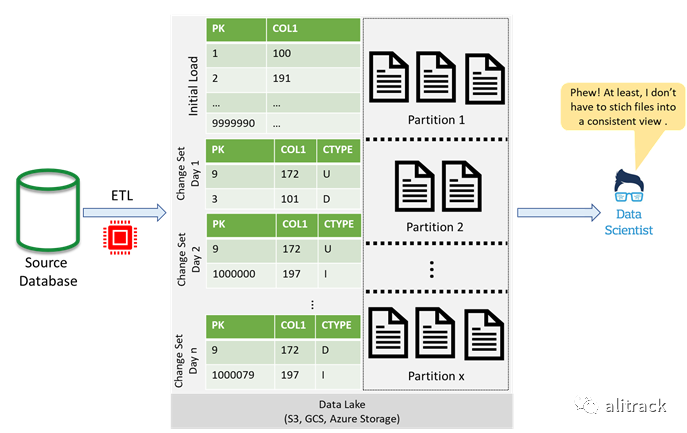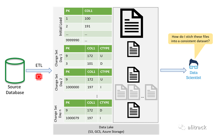 随着插入,更新和删除随着时间的推移而堆积,尝试导出表的当前状态变得成倍地增加了时间和计算量。大多数数据科学家都对这项复杂的工作不屑一顾,而是要求直接访问源系统,从而一开始就破坏了使用数据湖的目的。