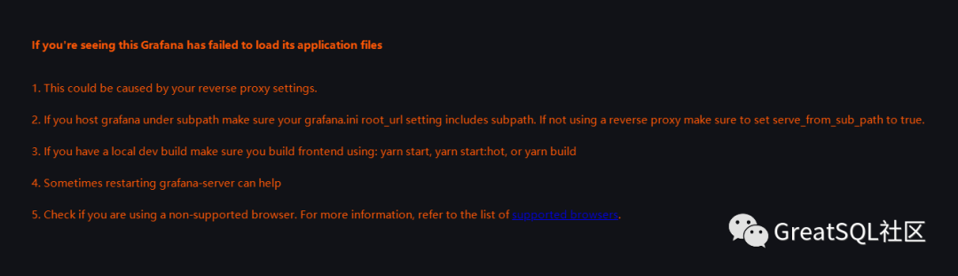 默认初始登录的用户名密码为:admin/admin 另外注意浏览器的问题:浏览器部分版本可能不支持Grafana的UI界面,比如我用搜狗浏览器和360浏览器都出现了如下的提示: