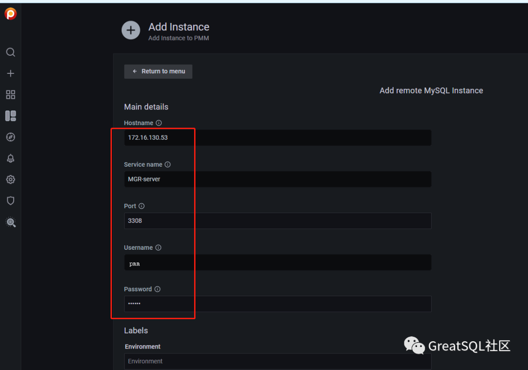 通过web页面方式添加MGR实例到监控中,具体操作如下图